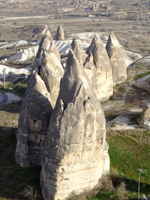 My other stop was Göreme in Cappadocia. The town with its surrounding landscape of so-called fairy chimneys is one of the main tourist sights in Turkey, and for good reason too. The oddly shaped rock formations, created by different layers of rocks, water, wind and many years create a magical landscape that is fun to explore, with new treasures around every corner. The rock structures would have been enough to keep me entertained for a long time, but for millenia people have been using the handy shapes, and soft lower rock, to carve out houses within them. Some of these houses are freestanding and up to 20m tall, some are more humble, and others still delve into cliffsides. Some are abandoned, some are old churches showing the long Christian presence in the area, but many are still inhabited by local families and farmers and many others have been turned into hotels and guesthouses (although now with indoor plumbing). The town of Göreme is slap bang in the centre of the fairy chimney wonderland, and since it only has a population of just over 2000 it was the first place on my trip that was geared entirely to tourists: half the buildings are hotels, hostels or guesthouses, with the other half either being restaurants, travel agents or souvenir shops. It has been a strange characteristic of my trip so far that I haven't actually had much contact with other travellers. That was to change here. Upon arrival I wandered around to try and find the best accommodation deal. The prices in my guidebook were half of the prices I was being quoted. Inflation's a bitch! Eventually I settled on a hostel that offered a bed plus breakfast for €7. I knew it was the best deal because the place was full of Koreans and Japanese, and if there's one thing I've learnt whilst travelling, it's that they always know where the cheapest accommodation is to be found. It was surreal to see all the staples of backpackerdom again: visitor guestbooks, lounge for hanging out, menu with obligatory muesli and fruit salad with yoghurt (though, surprisingly, no banana pancakes, but a range of ramen options instead for the Oriental clientele) and cramped dorms. None of that, and not even the snow on my last day, could dampen my enthusiasm, as I explored the various little valleys, each linked by centuries-old meandering footpaths. A truly enchanting place and one of the few that I wouldn't hesitate to go straight back to as there are a myriad nooks and crannies begging to be discovered.