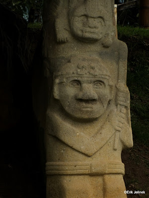 I find it curious how, and what, circumstances arise that cause one group of people to advance technologically (rather than using the loaded term "to become more civilised"). What caused the Eurasian civilisations to surge ahead whilst those in North America stagnated? how come the Incas and the peoples of the Peruvian coast advanced, whereas their neighbours to the north in Colombia remained fixed in place. All that to say that the remains at San Agustin and Tierradentro are no Machu Picchu. They are made up of various sets of tombs and tumuli, some painted (though lack of paint is more likely to do with the passage of time) and some with reliefs or sculptures, dating from around 0-1000AD*. Mainly for the archaeology purists out there, rather than for the mildly interested lay person.